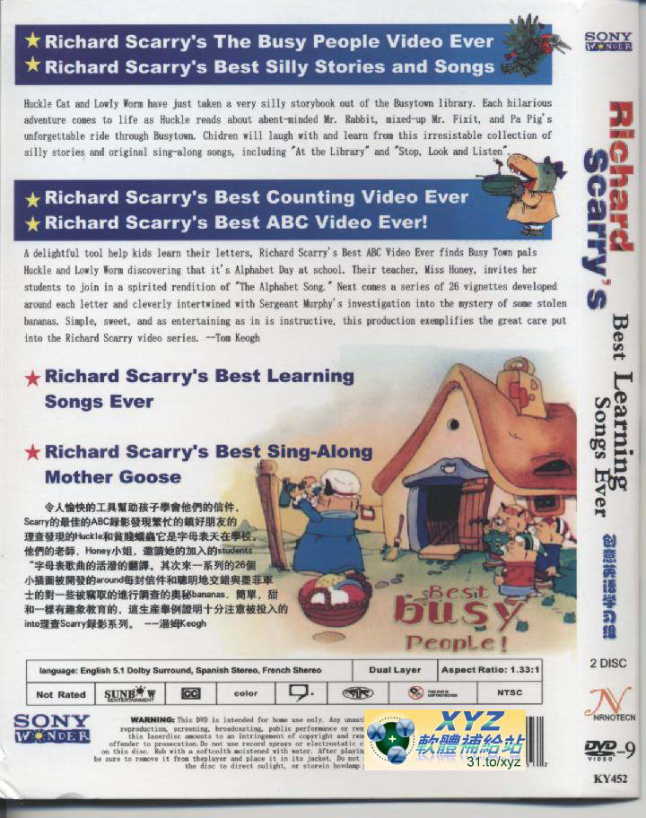 • 創意英文學習組 RICHARD SCARRY 1-3單元 英語發音 繁體中文/英文語言字幕版(DVD版)(卡通)(適用任何家用DVD播放機)